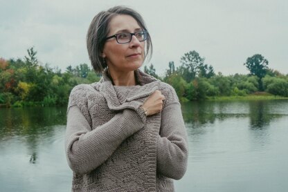 Reversible and no sewing! This open cardigan will be a staple in your wardrobe. The selvedges along the side and armhole seams are encased in a knitted facing that provides a polished look on both sides of the sweater. The back is worked from the bottom up. Stitches are picked up and knit along the side selvedges and additional stitches are cast on for the armholes. The fronts are worked side-to-side from the seam to the front opening. The selvedge edges on the cardigan fronts undulate while they follow the curving lines in the stitch pattern. Sleeves are picked up around the armholes and worked in the round to the cuff.