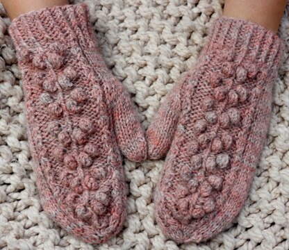 The mittens are quite easy to knit. The pattern explains how to knit the bobbles and the cable/twine like lines framing the berries are knitted using twisted stitches.
