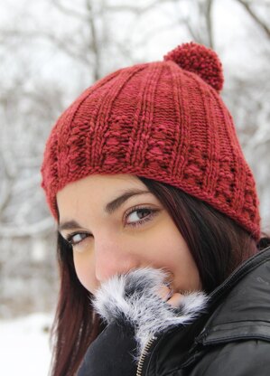 Both patterns start with the Hay Bale Stitch a textural band created by elongating stitches on one row and then wrapping them with your working yarn to create a mini Hay Bale on the next. Then ribbing organically grows out of it into the hat or headband.
