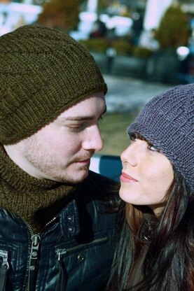 And it goes round and round, a modern swirl stitch pattern fronts a beanie and cowl set – for him and her…