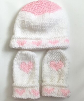 Head and Hearts Hat, Mittens set