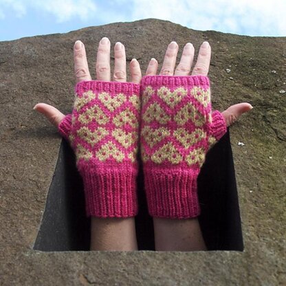 Sweet Mitts Decorated with Heart Shaped Cookies, based on motif # 147 in my book 200 Fair Isle Motifs: A Knitter’s Directory