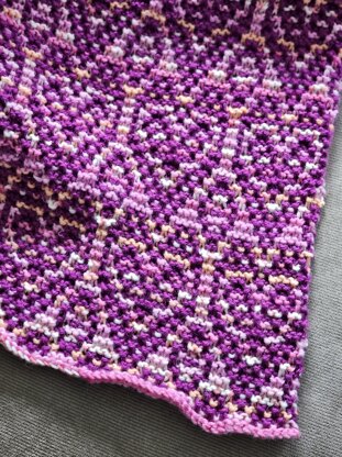 This pattern is worked in two different colored yarns. I suggest a variegated yarn for one, and a solid for the other. The colors I used have been discontinued but this is a very easy pattern to switch to your personal preference.