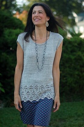 Worked seamlessly from the top down with one of the prettiest lace patterns ever (both charted and written out), this versatile, drop-shouldered pullover can be worked either as a sleeveless top in a lightweight fiber for warm climes, or with sleeves to keep you cozy in chilly weather. Short rows shape the shoulders so that they angle downward (no dreaded “wings” at the shoulders!) and reduce bulk at the underarms. Slim sleeves keep the look modern and sleek.