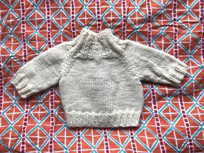 The pattern has row-by-row instructions with photographs. You'll need 1 skein of yarn as well as both regular and double pointed knitting needles, 4 markers, a yarn needle, and waste yarn to hold the sleeve stitches. It's only available in newborn size.