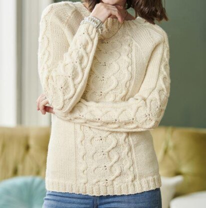 This is a pattern for a Hearts Cable Jumper, originally published in Simply Knitting. It has a hearts cable with a wave cable on either side of the front and back, wih stocking stitch on either side. The sleeves have the hearts cable with stocking stitch on either side. Raglan sleeves, rib edges. Photos Simply Knitting.