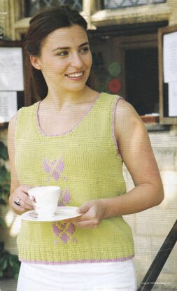 This is a pattern for a Hearts Tank Top, originally published in Knitting magazine. it is in stocking stitch with intarsia hearts at the front, rib welts with contrast edes. The lines across the motifs can be Swiss darned if this is easier. Photo Laurel Guilfoyle for Knitting.