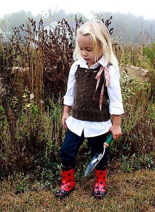 This little vest is great for chilly weather and for the child, who like mine, hates wearing full sweaters with long sleeves.
