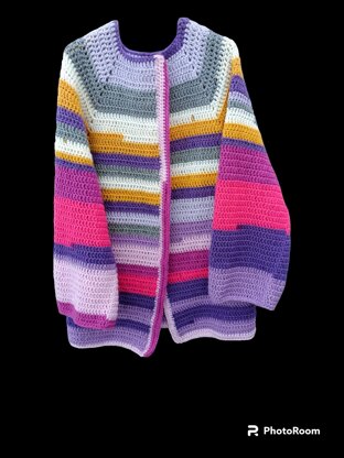 The Heavern cardigan is a simple oversized top-down cardigan. Crocheted in one size measuring 50” chest, it is an oversized cardigan for S/M individuals and a regular fit for L/XL individuals. Sizes can be easily altered with the change of hook size. With wide arms to add more comfort and movement.