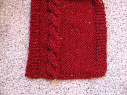 A simple assymetrical cable scarf that pops on a see of Reverse Stockinette. Easy eanough for a beginner to try cables. Works with any worsted weight (size 4) yarn.