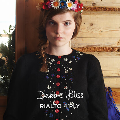 The Heidi Cardigan by Debbie Bliss, knitted in Rialto 4-Ply, is a simple yet charming project with a unique twist. The stocking stitch body with ribbed edgings creates a classic silhouette, but the magic truly happens with the embroidered details added after knitting. Worked in pieces and seamed with set-in sleeves, this cardigan is the perfect canvas for your creativity.