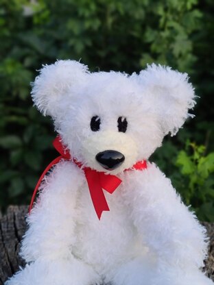 I used a really simple technique that makes working with fur yarn super easy. The bear is constructed with regular yarn first, then the fur yarn is worked over the existing stitches, making it easy to see each stitch as you're working into it. You get all the fluffiness with none of the headache!