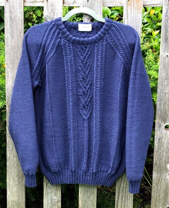 A lovely sweater suitable for men or women. The background is in reverse stocking stitch, showing up the textures of the various stitch patterns used in this design. Comfy raglans are also edged with matching stitchery, as are the side edges of the back and front. Perfect for any season. Worked bottom up, with full written instructions.