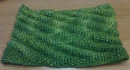 A simple cowl worked in a spiralling rib pattern, reminiscent of the old fairground helter-skelters.