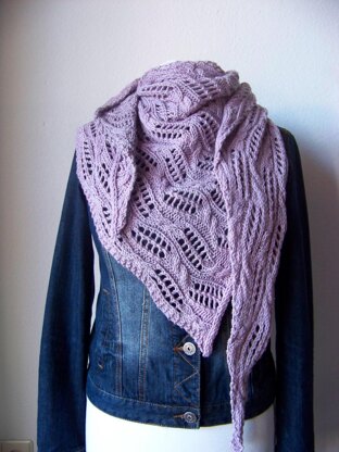 Maschenprobe: 14 Maschen und 25 Reihen auf 10 cm in kraus rechts mit Nadelstärke Nr. 6 mm, nach dem Waschen. Die Maschenprobe bei diesem Projekt ist nicht so wichtig. Eine andere Maschenprobe führt allerdings zu einem größeren oder kleineren Tuch und zu einem niedrigeren oder höherem Garnverbrauch.
