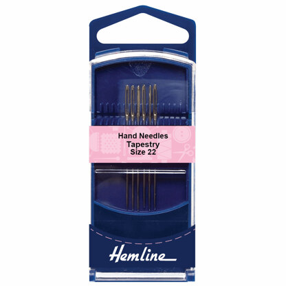 Diese Gobelinnadeln von Hemline bieten ein größeres Öhr für die Verwendung von dickeren Garnen. Diese Packung enthält sechs Nadeln, jeweils mit Größe 22.