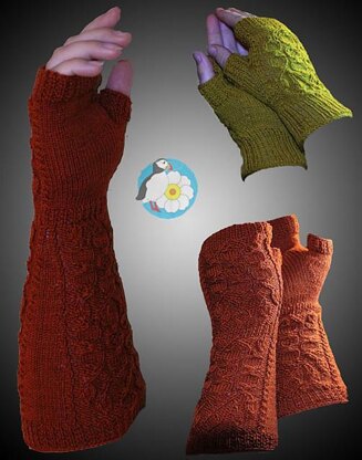 The size of the fingerless mitts can be varied by using thicker or thinner yarn and/or changing the needle size. Please note that by using another yarn, the requirements may be different than that stated.