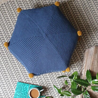 The squishy Hexi Pouffe is made from two hexis knitted in the round and a side panel strip which is knitted flat.