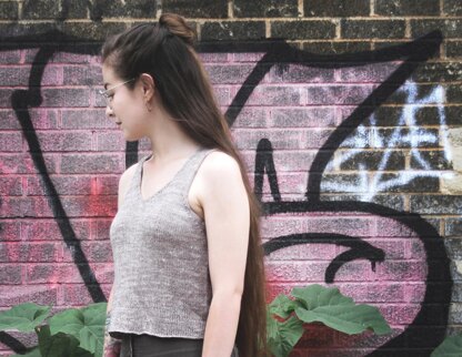 This tank is knit in two pieces from the bottom up and then seamed at sides and shoulders. All edges are “unfinished”, meaning there are no edging stitches such as rib or garter stitch that are normally used to help stockinette stitch lay flat. With blocking, the Handmaiden Flyss yarn will lay flat. If substituting with another yarn of a different fibre content, be sure to block your swatch and make sure it holds a nice flat horizontal edge when dry. If not, perhaps try working a couple rows of garter stitch (knit every row) after the cast on.