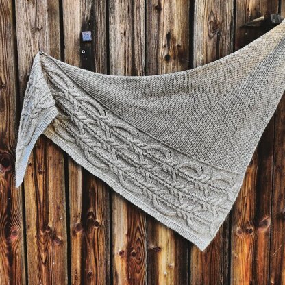 Meet the Hidden Paths Shawl - a warm and wooly hug you’ll never want to put down. The construction creates an asymmetrical triangular shawl knitted from the tip with a varied cable section and a mindless garter stitch section. The combination of alpaca yarn and silk mohair makes this piece super soft and cozy. The pattern works also for other yarn combinations and yarn weights.Just pick the yarn of your choice and work the shawl as big as you want.