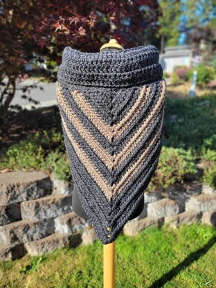 This is a cozy triangle shawl with a oversized cowl neck portion on the top. This is made in continuous piece.
