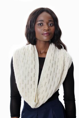 This simple cowl is an easy and quick project with an easy to memorize pattern. It can be knit quickly for a quick gift. The cowl can be worn over the shoulders as a capelet.