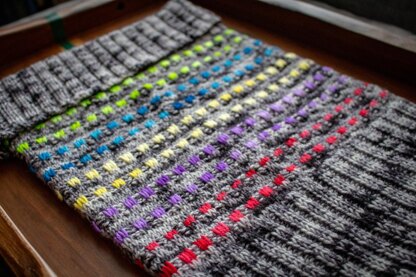 Ever become obsessed with a fabric you’ve created with your yarn and needles and want to use it with absolutely everything? That’s the rabbit hole I fell down while participating in another round of the Artesanitarium Design Challenge. For this round of the challenge, our prompt was to combine two design features - After a vote with the rhyFlower test team, we decided to go forth with texture and colorwork. This was going to be a challenge for me indeed! Colorwork is not one of my stronger skills, but I agreed to go with whatever the team had chosen, so the ball was in their court! - I fell so in love with the colors and textures of Hip to be Square that I couldn’t stop knitting it and went from a cowl design to adding in a hat and mittens too.