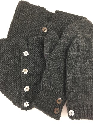 This is a smart looking unisex ribbed set of mittens and matching faux sweater neck warmer that is designed with a short back and a long front. Two sizes His (Large) Her (Medium) Use any soft worsted weight yarn. Approximately 4 ounces to create set. Knitted in the round (mitten) Knitted flat (neck warmer) Sewing required. Size US 7 (4.5mm) UK/Canadian 7 knitting needles Pattern includes a materials list and detailed instructions (in English). PDF is a 4 page download with the written instructions and photos. (311 KB)