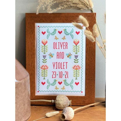 A gorgeous Scandi inspired Wedding cross stitch kit. The design is filled with flowers, birds and hearts with the happy couples’ names and date of the wedding stitched in the middle. This will make a lovely keepsake for years to come.