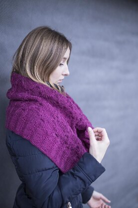 “Hit the Road Cowl” is a stylish accessory that can be worn for warmth and for fashion. Knit all in one piece, from the bottom to top, using the same cable stitch - this cowl can be beautifully paired with the “Hit the Road Hat”.