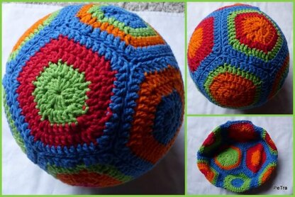 Aus einzelnen Granny wird diese Luftballonhülle / dieser Spielball gehäkelt.