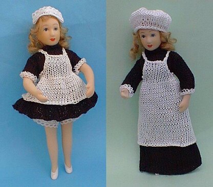 I have designed this easy to knit miniature knitting pattern for the dolls house in 1:12 scale. The finished outfits will fit a doll of about 6 inches tall in the dolls house.