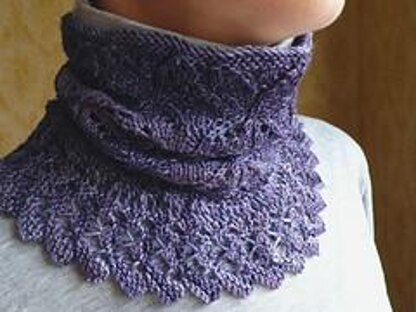 This neckwarmer in two sizes carries us through seasonal transitions by providing a chill-chasing layer without bulk. Knit in a crystalline cable-and-lace motif and finished with a knit-on border of lace snowflakes, this piece works up quickly on circular needles, travels well, and makes a beautiful gift. Substituting yarn and/or needles may result in an overall variation in size.