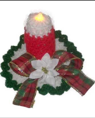 Use worsted weight yarns to crochet this holiday candle that fits over an empty toilet tissue roll and uses an LED tealight candle to make a safe candle to display anywhere in your home. Use it in a window display, on a table, on a mantle- anywhere you would like to add some holiday fun. Make it in other colors for everyday use or even for a birthday or other celebration.