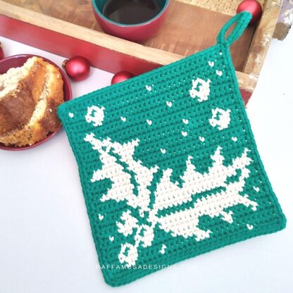 Being made in tapestry crochet, this potholder is compact, doesn’t have any holes, and is very functional.