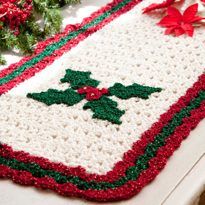 Holly Table Runner in Red Heart Holiday - LW2622EN - Downloadable PDF