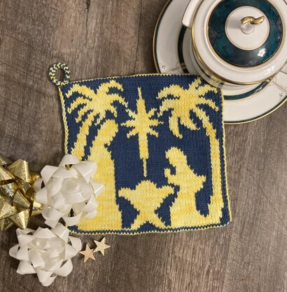 Do you love decorating your kitchen for the holidays? This lovely Nativity Scene depicts the Holy Family on the night of the birth of Jesus, complete with the shining star and some palm trees. Making this double knit potholder is a great way to learn this fun knitting technique. Both sides are the same, except with reversed colors. You’ll get the accomplishment of finishing a beautiful project and the confidence of adding a new skill to your knitting basket.