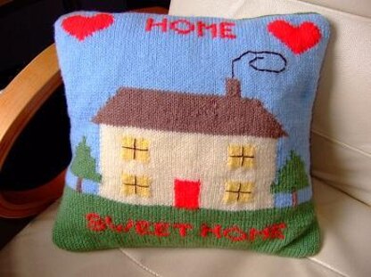 Knitted with double knit yarn on 4 mm needles and uses velcro for the back opening - so no buttonholes! The smoke and window frames are embroidered on afterwards in back stitch using tapestry thread, and the words are embroidered using cross stitch.