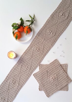 FORMAT: PDF, 21 pages, 3.5 MB (mobile devices friendly). Language - English. The pattern is written using USA crochet terms. Contains written pattern of runner (two sizes) and table mat Row by Row, with photos (aprox. 40).