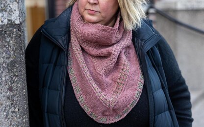 This bandana-style cowl is first knit flat, similar to a triangular shawl, and then joined to work in the round to the end.