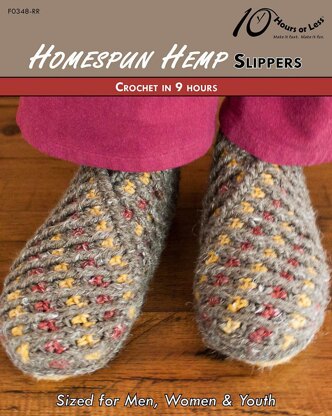 Crochet cushy comfort with a pair of speedy, striped slippers! Sized for men, women and youth, these rustic wraps boast a body of corrugated rib atop a contrasting single crochet sole. Even better: There’s no sewing required. And with two layers at the front, they’re sure to keep you “toesy cozy”!