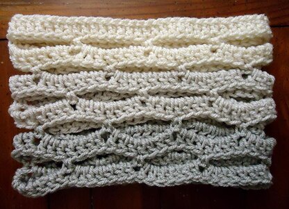 The Honeycomb Cowl is a great TV project - easy and quick to work up, it makes for a great last minute gift. There's two stitch patterns included in the pattern, allowing for adjusting to use any hook or yarn desired for the project. The sample used bulky yarn and an N (9mm) hook. This simple infinity or mobius scarf is worked in the round with minimal counting.
