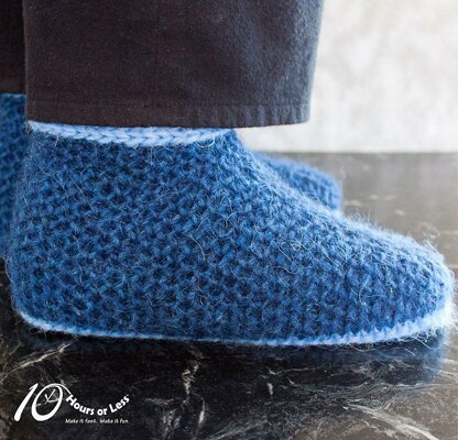 Get “country cozy” with a pair of woolen, woven-look slippers! Knitted seamlessly in a simple 4-round repeat, these rustic loungers boast a deeply dimensional honeycomb stitch atop a thick contrasting sole. Finely finished with coordinating I-cord, it’s a classic choice for fuss-free footwear. Best of all? There’s no sewing or finished required. So they can be off your needles and on your feet in the same day!