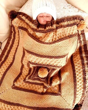 *HONEYCOMB* baby blanket knitting pattern. Knitted in 4 easy triangles and sewn together at the end using the little loops/eyets made at the start of every row. Nice and easy, all stitches are clearly written and explained. Finished size is approx 30x30ins/76x76cms. It takes 300gms of baby soft double knit, or equivalent, on 5mm straight knitting needles. The Pom Poms are optional . This pattern is available as a pdf ONLY