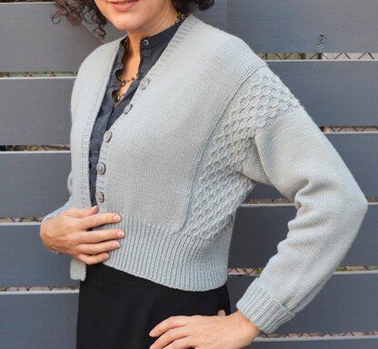 The Trellis Honeycomb is a cropped Cardigan with lovely honeycomb trellis pattern detail that adds texture and interest to a basic wardrobe piece. Another small and practical detail is the pocket tucked away in the right bottom ribbing. Although the body of the cardigan is wide and loose-fitting, the bottom ribbing pulls the cardigan in at the waist for a neat and fitted look.