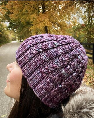 The Honeyvine Beanie is named after a wild-growing plant native to Kentucky, my home state. The climbing cables of this knit beanie are reminiscent of the resilient vine.