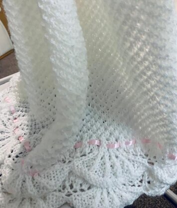 *Hooded Cape For Baby* is knitted in one piece from the bottom border up. It's an easy knit. Only uses 200gms of baby double knit yarn on 5mm knitting needles. Measurements are approx 18ins/46cms from neck to border and the hood is approx 6ins/15cms Birth to 3-6 months depending on the size of the baby of course.