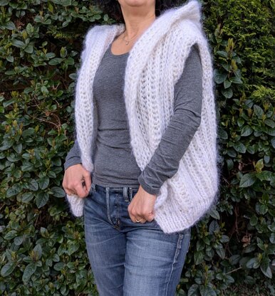 - 500-800yds super chunky/ bulky yarn. I worked with two strands of yarns held together, one mohair, one super chunky yarn