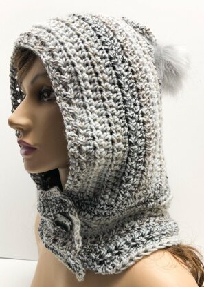 This is a great hooded cowl scarf pattern. Its made in one piece and has a front button closure. You will love making this scarf in many colors and it makes a perfect gift.