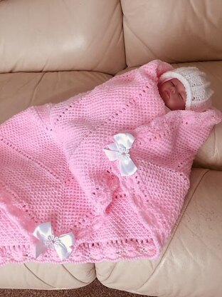 Knitted in baby soft double knit yarn using approx 250gms on 5mm knitting needles.